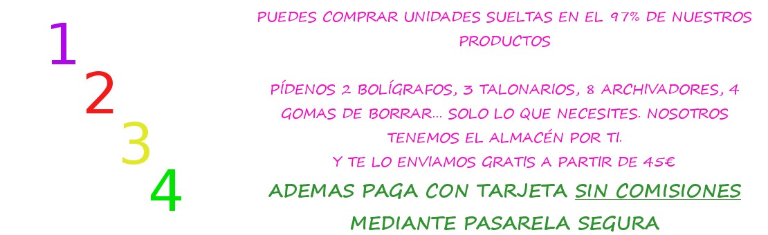 Puede encontrar en nuestra tienda online todo tipo de material de oficina y material escolar,desde un simple lápiz a una encuadernadora de uso intensivo, pasando por archivadores, cuadernos, bolígrafos… y todo al mejor precio.